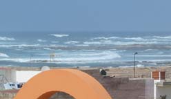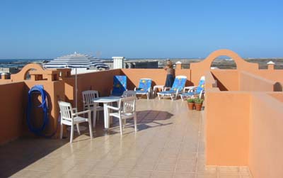 The roof terrace offers panoramic views north up the coast to the lighthouse and back inland towards the mountains.